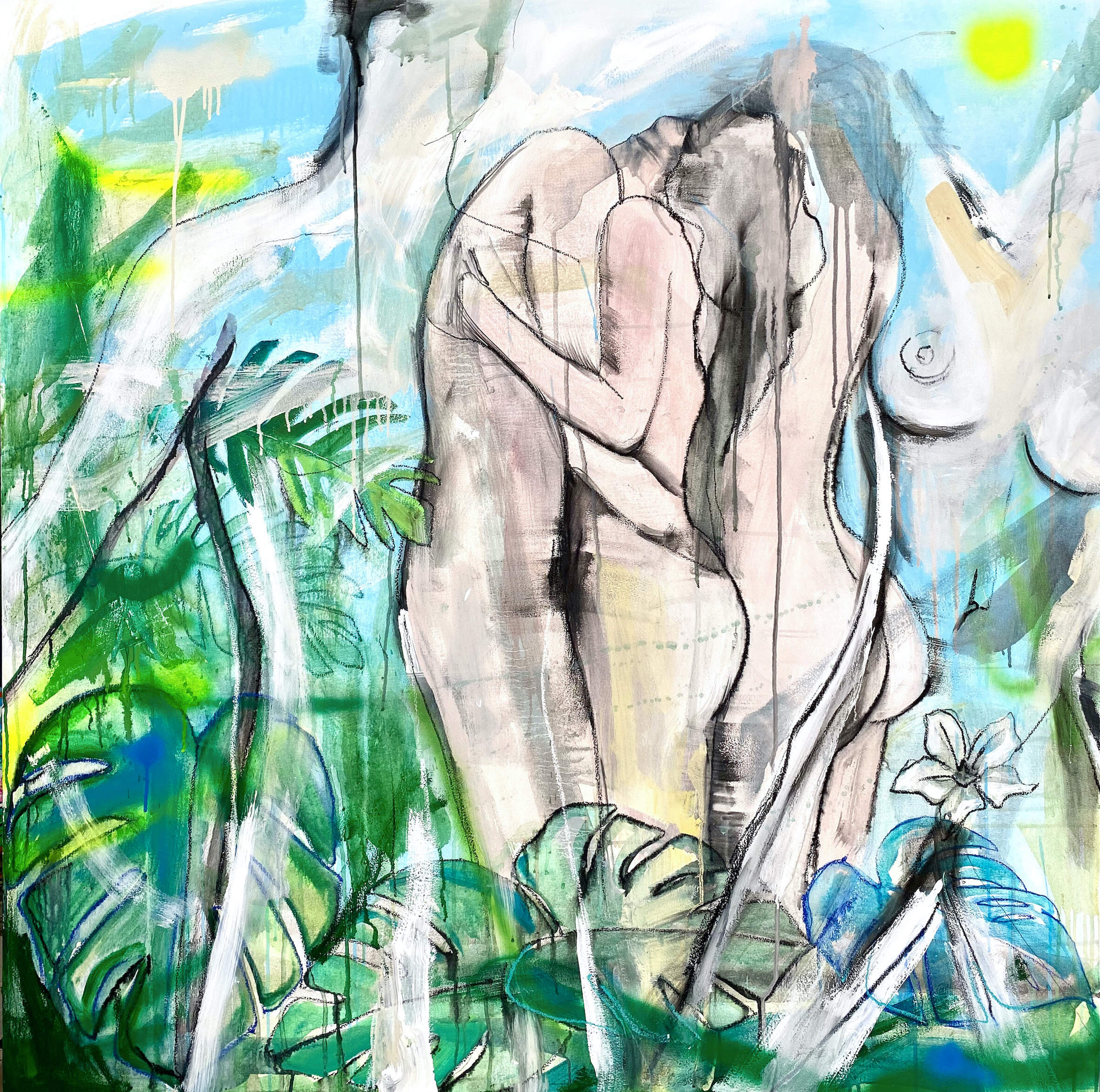 L' Eden è noto come luogo o condizione di pace e di felicità, una coppia immersa nella vegetazione si stringe in un abbraccio d'amore, i corpi nudi si muovono e si cercano in una danza infinita. L'opera, attraverso il gruppo di figure centrali, può far riferimento alle Tre Grazie che, nella mitologia, erano legate al culto della natura e della vegetazione e ritenute le dee della gioia di vivere.